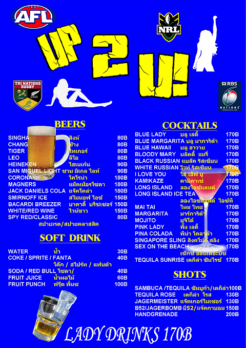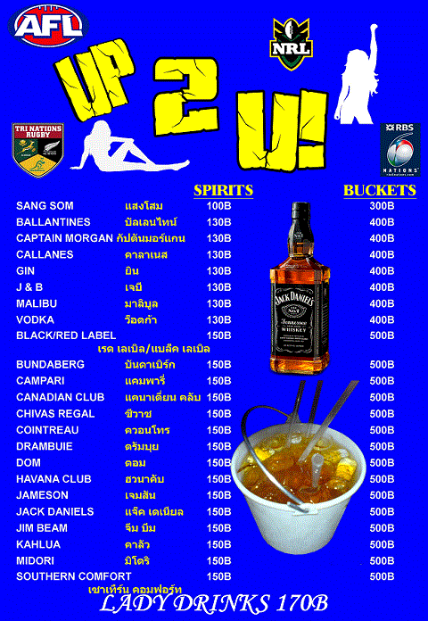 Sit down, relax and choose your favorite drink from our menu,from COLD BEERS, COCKTAILS or our popular BUCKETS.